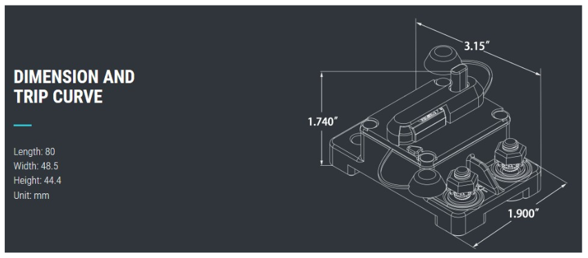 150A zekering met resetknop. Aansluiten middels de 2 M10 stuks op de voorkant van de zekering. Komt met 3 schroefgaten om deze ergens op te kunnen bevestigen.